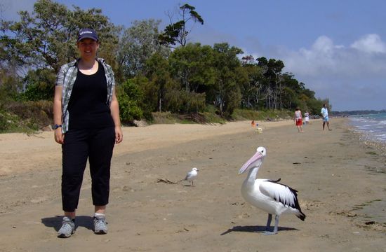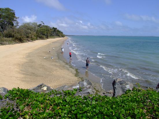 Hervey Bay is situated 300 km north of Brisbane. It is a very popular holiday destination, also for Australians. The whole township consists pretty much of hotels, backpacker hostels, restaurants and bars and shops. And a campground is there too. In winter, the temperatures are between 14 and 23 degrees, in summer between 22 and 29 degrees (celcius). Very nice, isn't it?