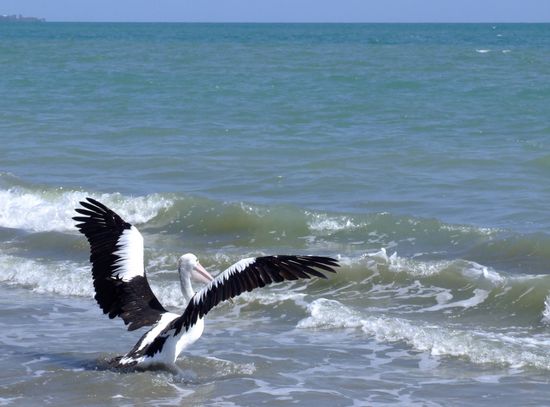 When I had a closer look at the beach I saw some people fishing. And where people are fishing - there are pelicans around I absolutely love these birds, they are sooooooooooooo funny! Of course I had to have a closer look and was able to take some nice photos: