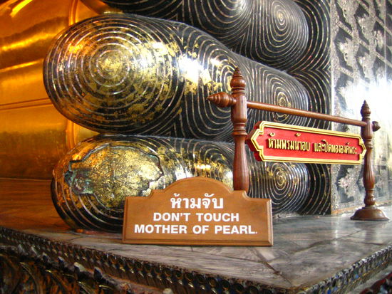 At the bottom of the Buddha's feet, there are pictogram carvings all made out of mother-of-pearl. They were just amazing to behold.