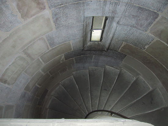 And then we climbed up to the watch tower on the other side. From what we understand from the signs in French, for centuries a man was posted up there to watch for emergencies. I would assume it was his job to watch for fire, invasion, etc. He would then record the location and then blow a long horn to alert the authorities. The sign said he was replaced by the telephone in 1911. Sad.