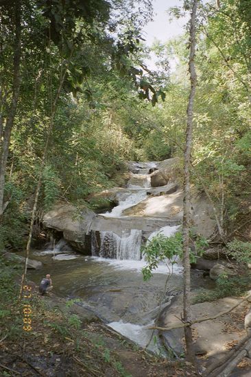 [Martin: ][/b] After taking a bath we finally start hiking. Of course we knew that the jungle of Northern Thailand wouldn't be a typical monkey-tiger-palm tree-jungle, where Central Europeans, raised by apes, jump from liana to liana, but that it would be more like a megalomaniac German mixed forest. But even the 400 different species of birds, that are supposed to live on the [i]Doi Inthanon[/i] (the highest mountain of Thailand), are not to be seen. We cannot resent this - haunted by fifteen camera-armed tourists stamping through my living room, I would hide, too.