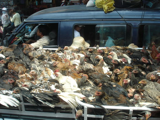 Got up at 7am still beat-tired to drive to the Backpacker's District to meet Christine in front of STA Travel. We wanted to go on a day-trip to the Cu Chi Tunnels and our first stop was at a temple of the Cao Dai religion, where we had a chance to see a ceremony. We kind of felt like in a zoo though - there were just too many tourists and most of them were dressed inappropriately, talking loudly and taking pictures with flash during the ceremony - we were a bit ashamed to be part of the group. At 2 pm we arrived at the Cu Chi Tunnels and our guide "John Wayne" as he liked to call himself took us on a roundtrip of the site and we had a chance to crawl inside the tunnel system - scary experience, especially if you are claustrophobic. The Communist Rebells back in the days had built 3 different tunnel levels, the lowest being only 50 times 20 cm in circumference, unbelievable people could last there with poor ventilation and so little room. Along the way we saw few tanks and traps, remainders of the war. Whoever wanted also had the chance to get a rifle and shoot few times...