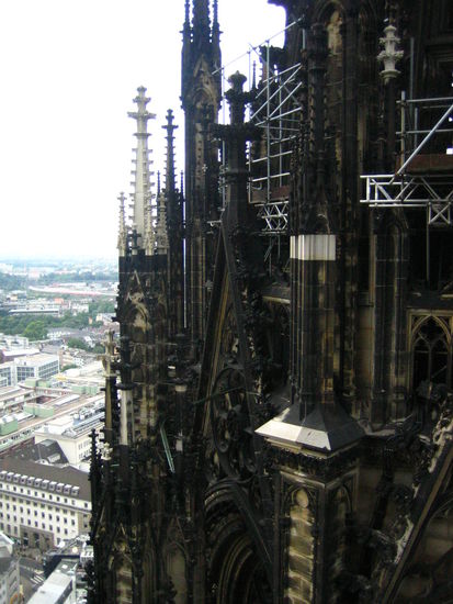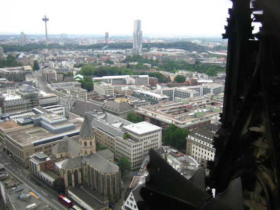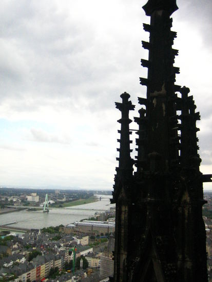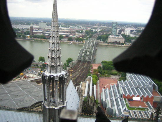 After a hearty lunch, we went to the Dom Cathedral--hiked the 502 ft up to the tower (a 30 minute walk straight up the narrow, steep steps to the top) and enjoyed the lovely, albeit, scary view of Cologne city.