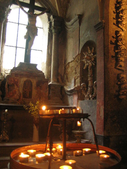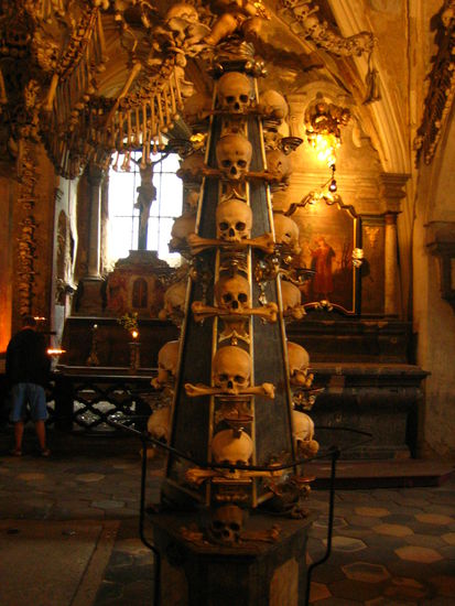 Arriving into Kutna Hora, we walked with a group of Asian tourists that apparently knew how to get there, to the Kostnice-- or Ossuary-- also known as the "Bone Chilling Chapel".