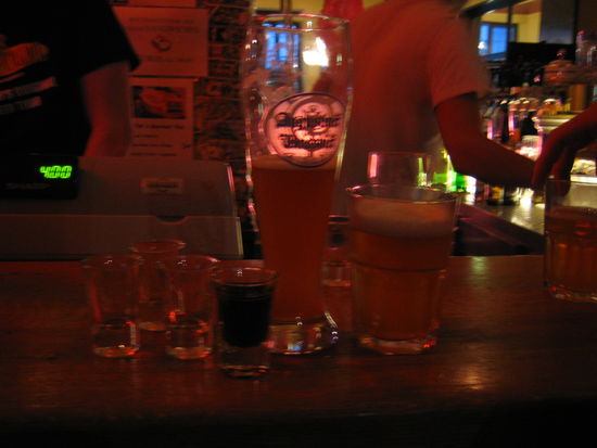 Adam and I walked to the Euro Youth Hostel, where an all-you-can-drink for one hour at the lobby commenced. Prior to this excursion, we split a slice of pizza because on the flyer, there was promise of 'German delicacies'. Sadly we would find out the hard way that the slice of pizza was the only German delicacy we would encounter that evening.