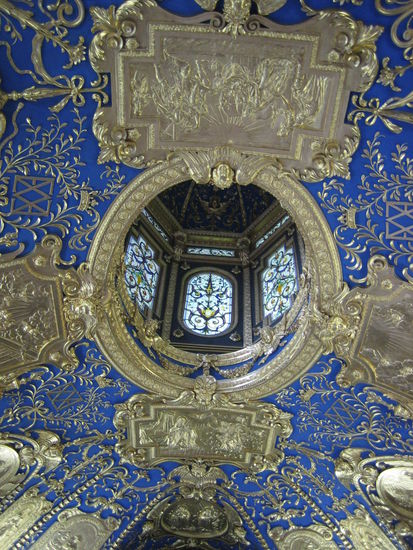 The vaults above the windows, and the window jambs, are decorated with 102 views of towns, markets and palaces in what was then the Duchy of Bavaria. They are surrounded by grotesques, a type of ornament derived from classical antiquity.