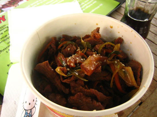 11:40am- Walked down Mariahilferstrade. Ate at Quick Lee's with the racist packaging. Pretty decent bulgolgi with rice.