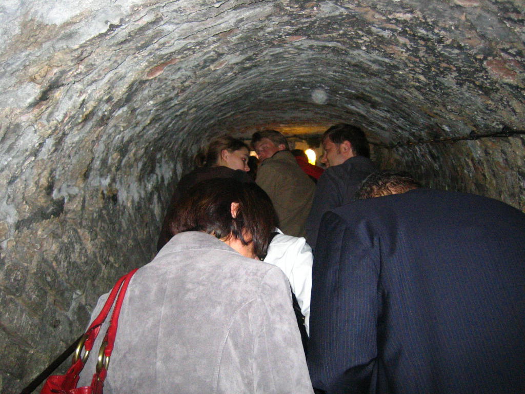 2:30pm- Catacombs: Funny/wry tour guide. There were eerie bones and while Adam and I surveyed the skeletal figures, the group ran ahead of us, making Adam and I the 'last ones' of the group. We took turns scaring each other. When the guide asked if we had any questions, I asked him: "Have you ever opened the lid to see what the organs in the pot look like?" The guide laughs nervously, "No, but there was a leak once and the Cathedral was closed for a week due to the stench. It just looks like black glue." The group laughs when I brought up this question. It's obvious we all wondered the same thing.