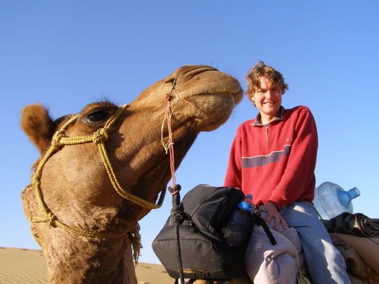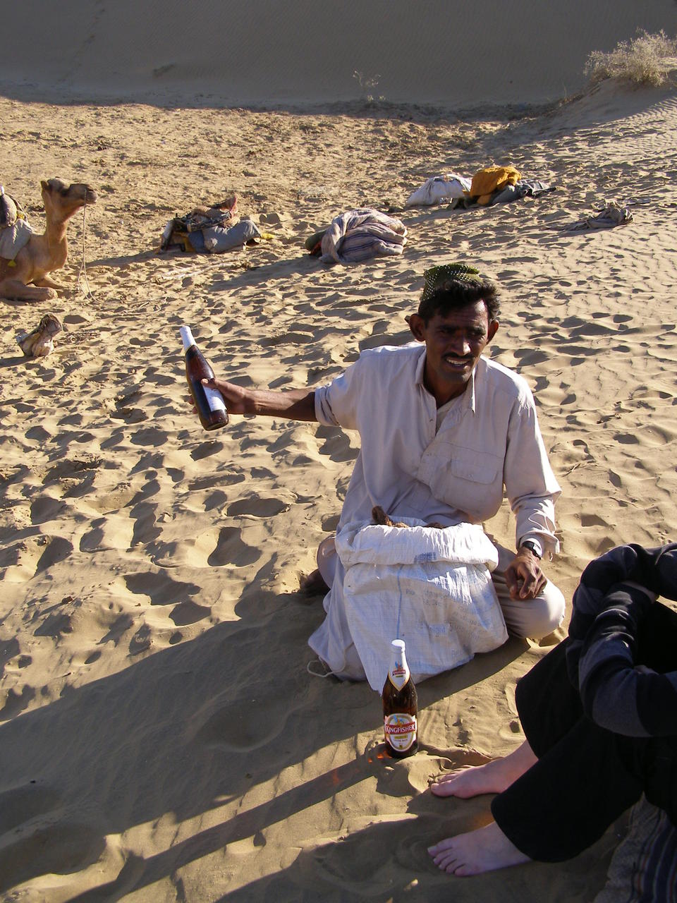 After some hours of camel riding we made a lunch stop. Our guide made very good chai tea and vegetarian curry.