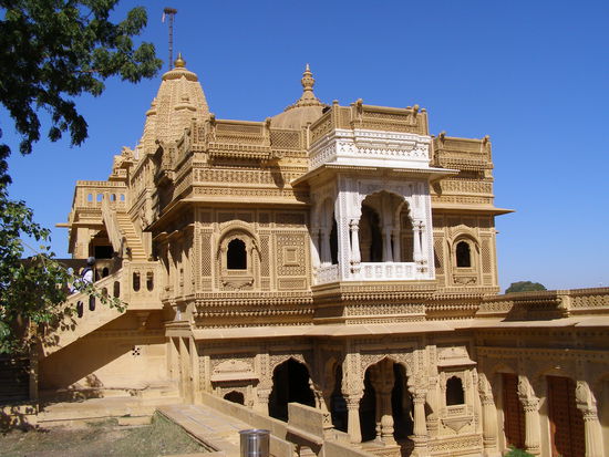 The morning I got up very early because my camel safari started. A jeep took us more far into the Thar desert. On the way we stopped at Bara Bagh Funeral.