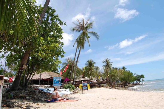 After hanging out a couple of days there and getting the first sunburn and mosquito bites of the season, we changed location to White Sand Beach just 20km away. We got a bit lost there as we had to discover that our hostel of choice at a couple of euro had turned into some luxury resort coming at ten times the prices. That taught us to carefully check the issue date of our guidebooks. Anyway, even in this rather touristic spot you still have a couple of budget hostels, and we can recommend Maylamean Bungalows (from 8 euro per night with shower and fan), with monkeys just in the backyard and your private monster-sized gecko doing a hellish noise several times per hour during the sleeping period. I actually though it was some huge bullfrog until informed otherwise... Also a very nice piece of earth, you get a lovely beach for yourself if you just walk a bit northward from the main city beach. This is probably one of the places where one would like to settle down to retire.