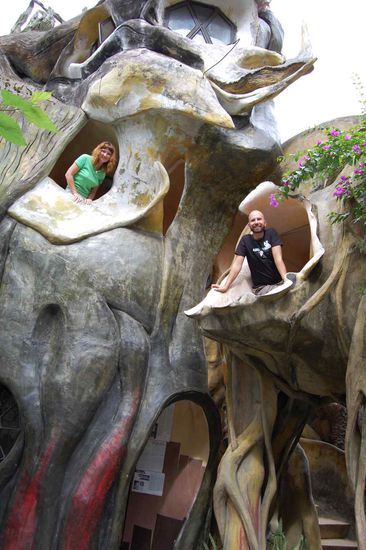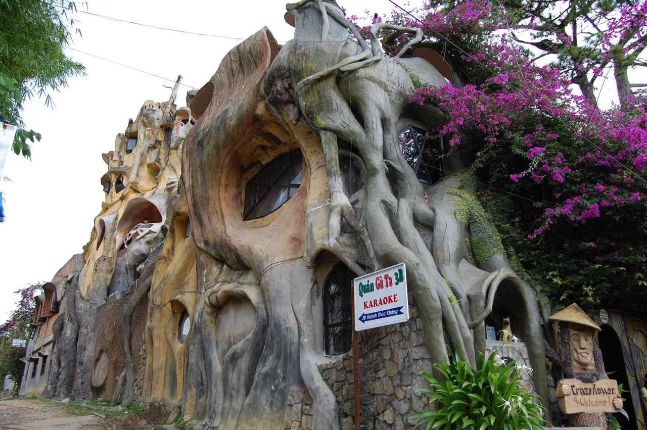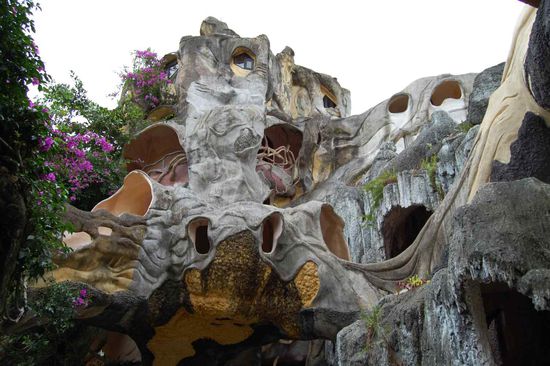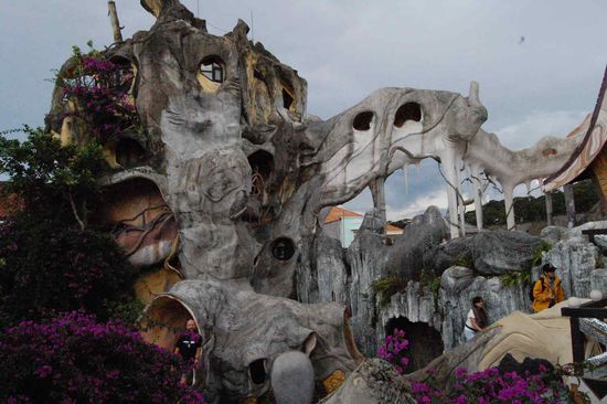 and not to forget Crazy House. This is a brainchild of a Vietnamese architect women who studied architecture in Moscow and then put into reality her childhood fantasies in a hotel resort that combines Alice' wonderland, Gaudi and smurfland.