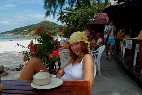 It is amazing how quick the island empties after the party - we stayed one day longer and had the impression that it became really deserted. So we dared to rent a motorbike for some island excursion. Bad decision, as we had to find out. The island is very mountainous, and its roads are steep, with sharp curves and lot of sand and dirt. In addition, we got a weak motorcycle with the result that it actually simply stopped at some hill, and Vera had to walk to the top while I was driving at 5km per hour, merely keeping balance and definitely annoying the line of cars in my back. Add the scary road conditions, and we decided pretty quickly that its better to spend the day on the beach instead of taking unnecessary risks. Driving here is really dangerous, and everybody can rent a quad or a motorbike here for cheap money. You have a drunken crowd inexperienced on local road conditions driving at night, and as a rule without helmet just in shorts and flip flops. As a result, there are literally hundreds of people with the typical marks of road accidents - bad burns, abrasions, broken bones - and that are only those cases which already made it out of the hospital.