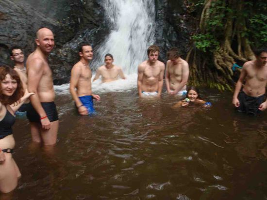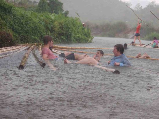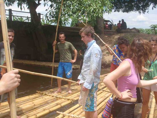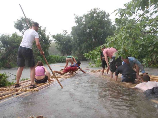 The highlight of the next day was bamboo rafting, and though there were no rapids on the river and we frequently even had to go off the rafts to push them, the whole thing ended with the rafts falling apart into pieces and everybody being soaking wet.