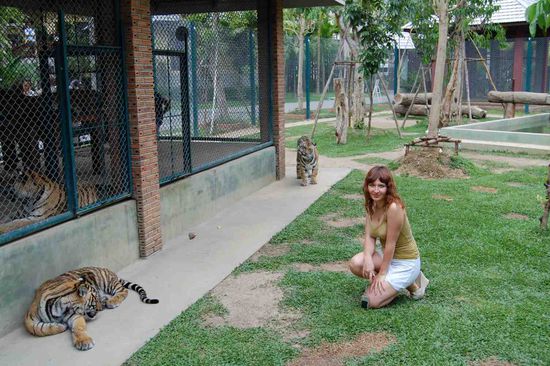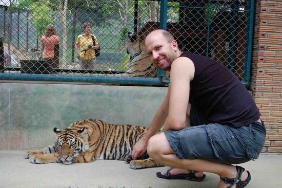 From Khao Yai we went further to Chiang Mai in northern Thailand. It is a very relaxed and beautiful city with a daily night market and again, very impressive variety of all kind of foods one can imagine. We stayed in the "Nice Place Guesthouse" (double room with fan for 6 euro, and decent discounts when you book a tour with them). First action here was to go to Tiger Kingdom, where you can caress little and grown up tigers like you would do with your dog.