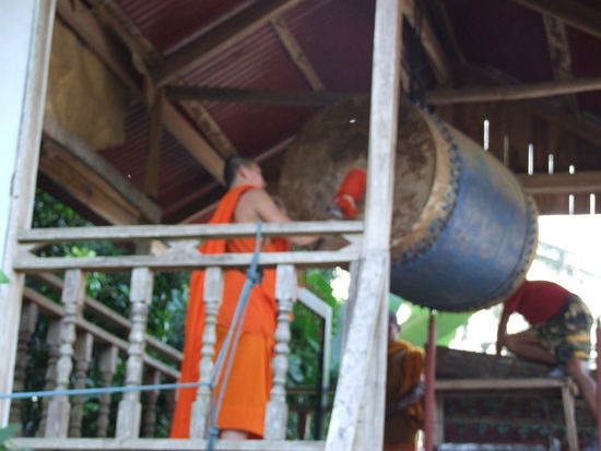 Scrambling out of the Tuk Tuk and running straight away, looking for the drum, I finally found a monk drumming. Great to see a Buhist monk drumming. And they have been ever accomodating and patient to the "stupid Falang".